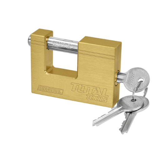 Introducing the Total Heavy Duty Brass Block Padlock – TLK32703, the ultimate security solution for your valuables. This high-quality padlock combines rugged construction, superior performance, and advanced security features, making it the perfect choice for safeguarding your belongings. With its heavy-duty brass body, hardened steel shackle, and tamper-resistant design, the TLK32703 provides unmatched protection and peace of mind. The Total Heavy Duty Brass Block Padlock – TLK32703 is built to withstand the harshest conditions. The solid brass body offers exceptional durability and corrosion resistance, ensuring long-lasting performance even in challenging environments. The hardened steel shackle provides maximum strength and resistance against cutting or prying attempts. With the TLK32703, you can trust that your valuables are securely protected. Security is a top priority with the TLK32703 padlock. Its tamper-resistant design and advanced locking mechanism offer a high level of security against unauthorized access. The precision pin tumbler system ensures smooth operation while preventing picking or manipulation attempts. Rest assured that your belongings are well-guarded with the TLK32703. The generous size of the TLK32703 padlock makes it suitable for various applications. Whether you need to secure gates, sheds, containers, lockers, or other items, this padlock provides the perfect fit. Its sturdy construction and reliable performance make it suitable for both indoor and outdoor use. The TLK32703 padlock is designed with user convenience in mind. The smooth and reliable operation of the lock mechanism allows for easy locking and unlocking. The keyway is designed for quick and hassle-free key insertion and removal. With the TLK32703, you can experience seamless security without any unnecessary complications. Versatility is another key feature of the TLK32703 padlock. Its compact size and lightweight design make it easy to carry and use on the go. Whether you're traveling, camping, or need a portable security solution, the TLK32703 is your reliable companion. Invest in the Total Heavy Duty Brass Block Padlock – TLK32703 and enjoy the peace of mind that comes with robust security. Its solid construction, tamper-resistant design, and advanced features make it the ultimate choice for protecting your valuables. Experience the reliability and durability of this heavy-duty brass block padlock and ensure that your belongings are safe and secure.