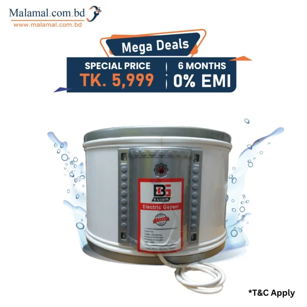 Water heater geyser best price in bangladesh You can get a water geyser at a price range of 5,999 Taka to 7,000 Taka in Bangladesh. Mega deals with 0% EMI for 6 months.